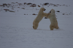 実際、氷がはる時期が遅くなっているのは確かで、わたしがチャーチルにでかけた2009年も、通常なら氷がはる時期なのに、気温が下がらず、しろくまが、ひたすら氷をはるのを待っている(ように見える)光景もみました。